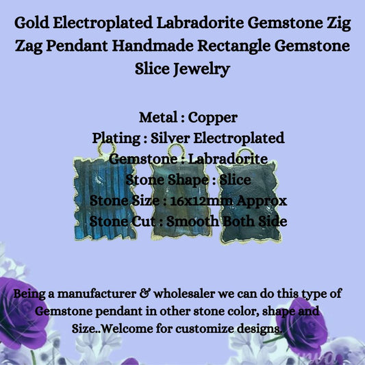 Gold Electroplated Labradorite Gemstone Zig Zag Pendant Handmade Rectangle Gemstone Slice Jewelry