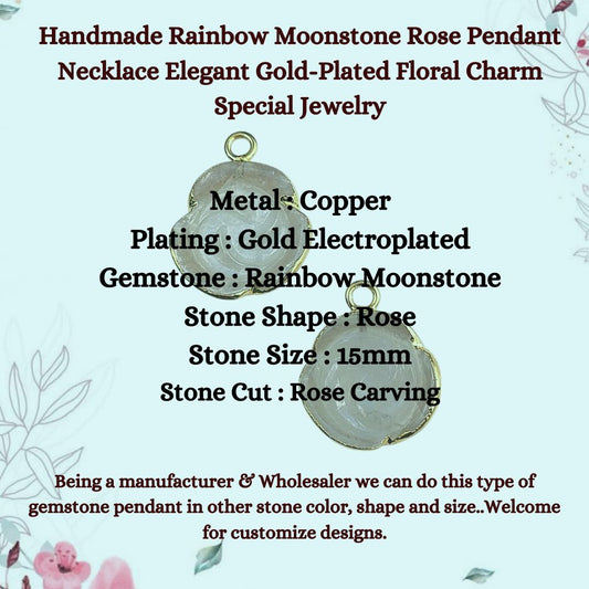 Handmade Rainbow Moonstone Rose Pendant Necklace Elegant Gold-Plated Floral Charm Special Jewelry Gift for Women- Selling Per Piece