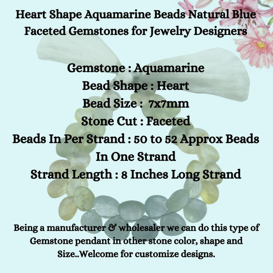 Heart Shape Aquamarine Beads Natural Blue Faceted Gemstones for Jewelry Designers