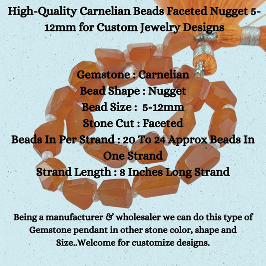 High-Quality Carnelian Beads Faceted Nugget 5-12mm for Custom Jewelry Designs