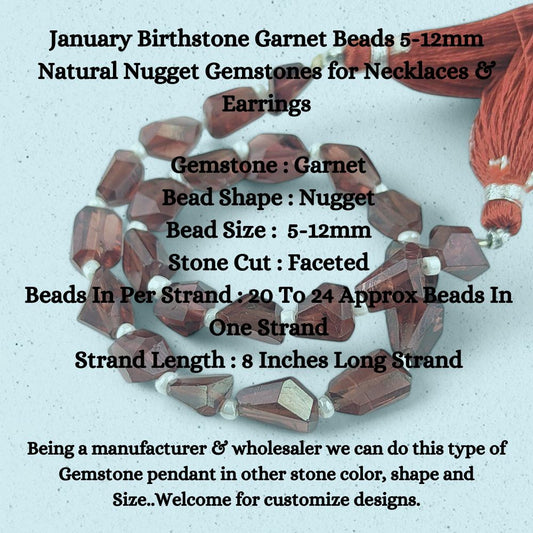 January Birthstone Garnet Beads 5-12mm Natural Nugget Gemstones for Necklaces & Earrings