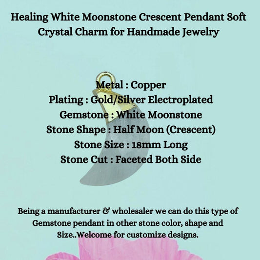 Healing White Moonstone Crescent Pendant Soft Crystal Charm for Handmade Jewelry