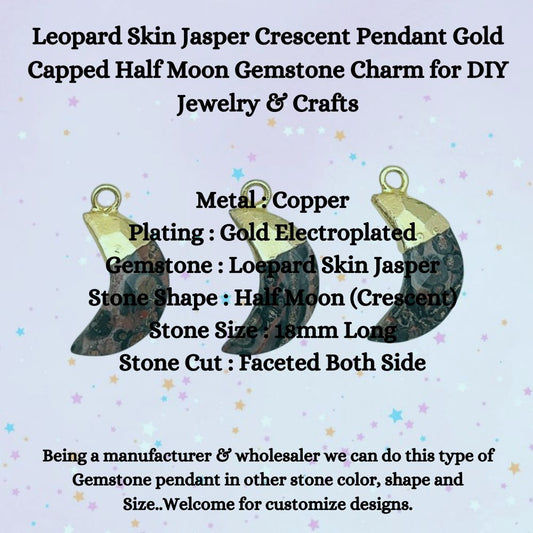 Leopard Skin Jasper Crescent Pendant Gold/Silver Capped Half Moon Gemstone Charm for DIY Jewelry & Crafts