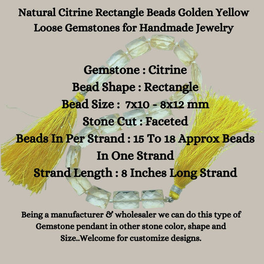 Natural Citrine Rectangle Beads Golden Yellow Loose Gemstones for Handmade Jewelry
