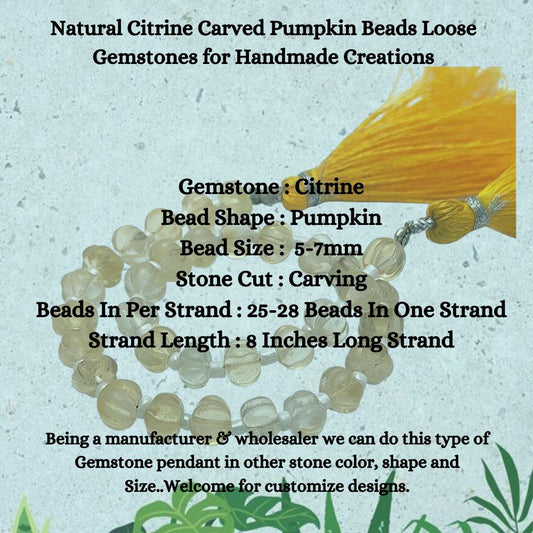 Natural Citrine Carved Pumpkin Beads Loose Gemstones for Handmade Creations