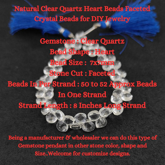 Natural Clear Quartz Heart Beads Faceted Crystal Beads for DIY Jewelry