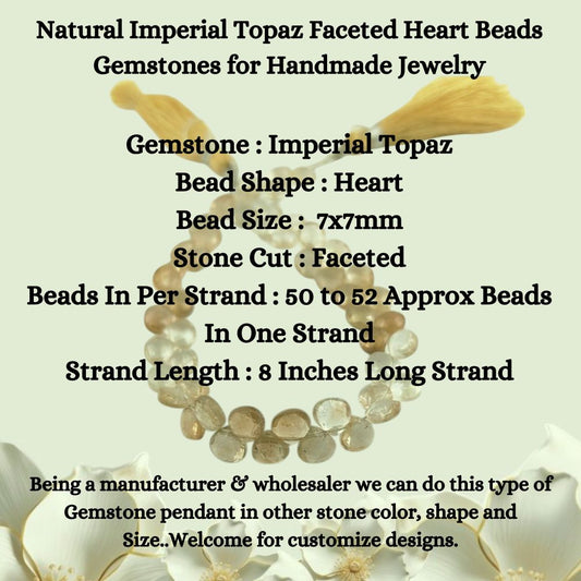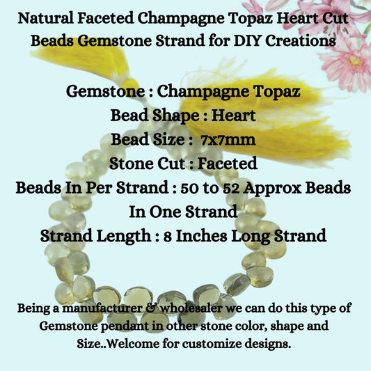 Natural Faceted Champagne Topaz Heart Cut Beads Gemstone Strand for DIY Creations