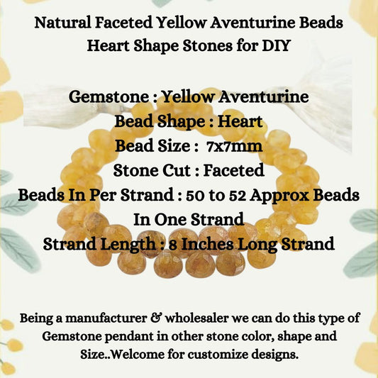 Natural Faceted Yellow Aventurine Beads Heart Shape Stones for DIY