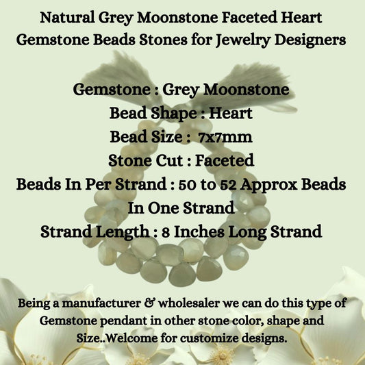 Natural Grey Moonstone Faceted Heart Gemstone Beads Stones for Jewelry Designers