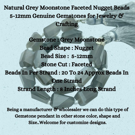 Natural Grey Moonstone Faceted Nugget Beads 5-12mm Genuine Gemstones for Jewelry & Crafting
