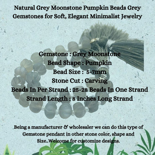 Natural Grey Moonstone Pumpkin Beads Grey Gemstones for Soft, Elegant Minimalist Jewelry