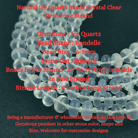Natural Ice Quartz Beads Crystal Clear Gemstone Strand