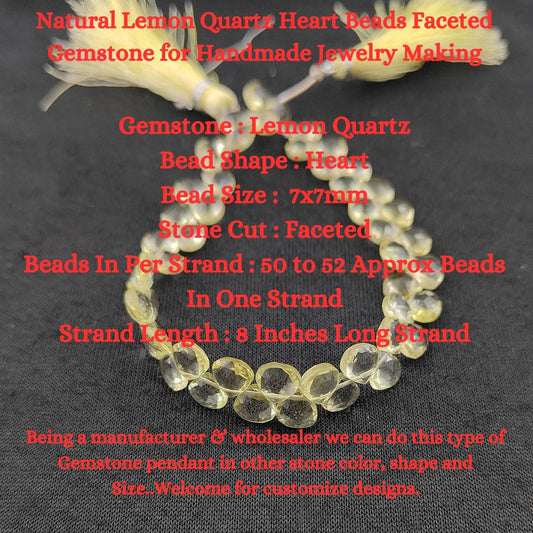 Natural Lemon Quartz Heart Beads Faceted Gemstone for Handmade Jewelry Making