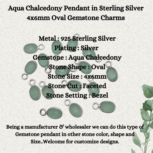 Aqua Chalcedony Pendant in Sterling Silver 4x6mm Oval Gemstone Charms