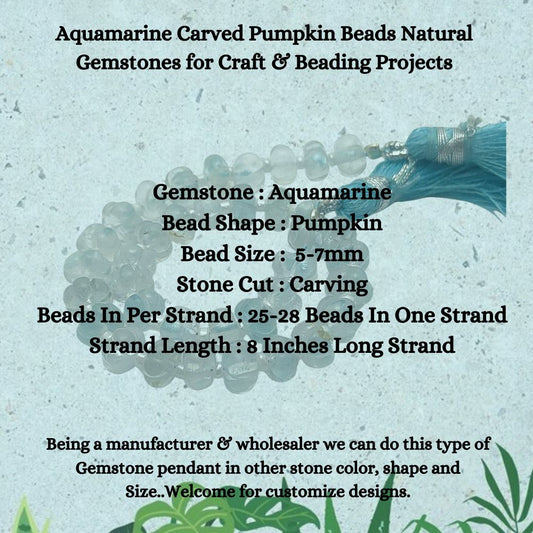 Aquamarine Carved Pumpkin Beads Natural Gemstones for Craft & Beading Projects