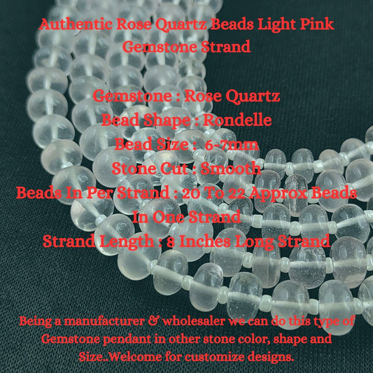 Authentic Rose Quartz Beads Light Pink Gemstone Strand