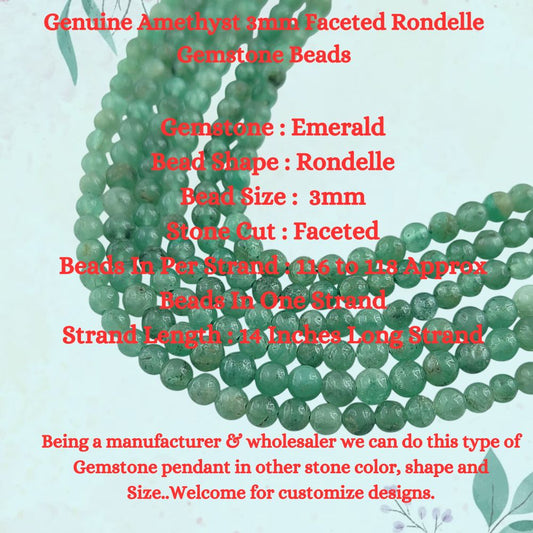 Beautiful Green Emerald Faceted Rondelle Beads for DIY