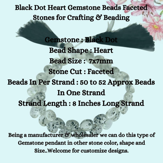 Black Dot Heart Gemstone Beads Faceted Stones for Crafting & Beading