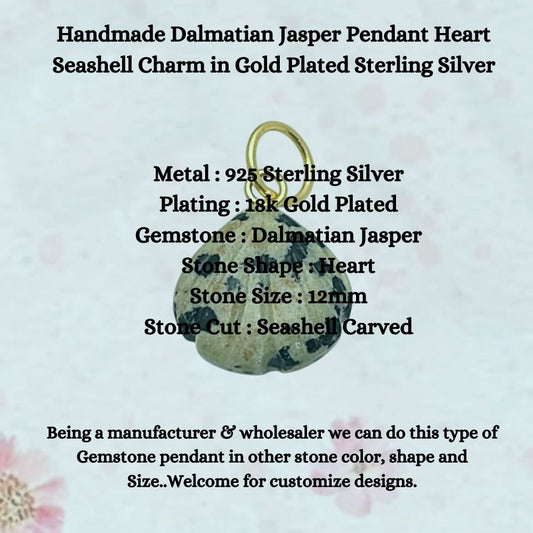 Dalmatian Jasper Seashell Pendant Handmade Gold Plated Sterling Silver Jewelry