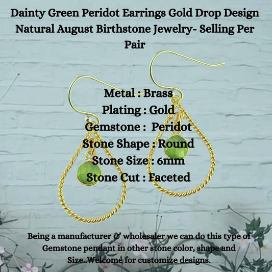 Dainty Green Peridot Earrings Gold Drop Design Natural August Birthstone Jewelry- Selling Per Pair