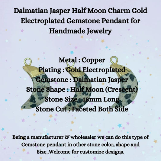 Dalmatian Jasper Half Moon Charm Gold/Silver Electroplated Gemstone Pendant for Handmade Jewelry