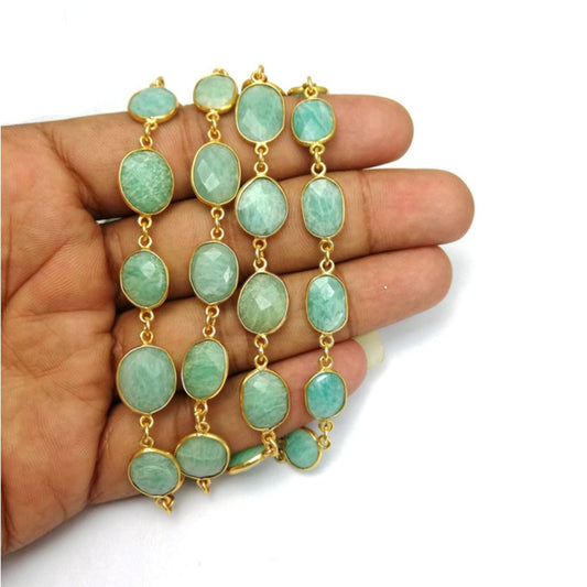 Amazonite Bezel Connector Chain Gold Plated Freeform Gemstone Links Necklace & Bracelet Jewelry Supply -Sold by Foot