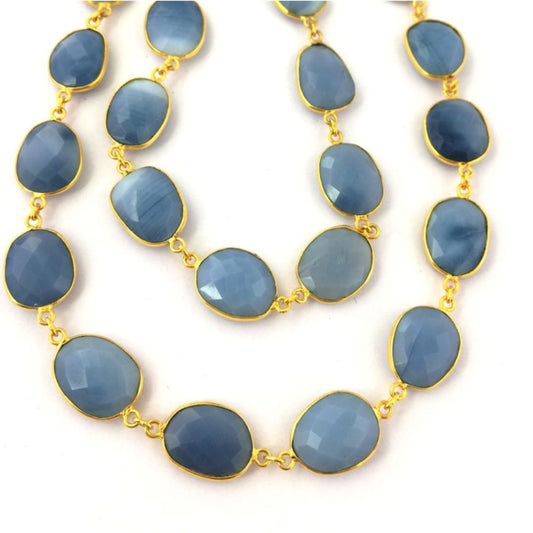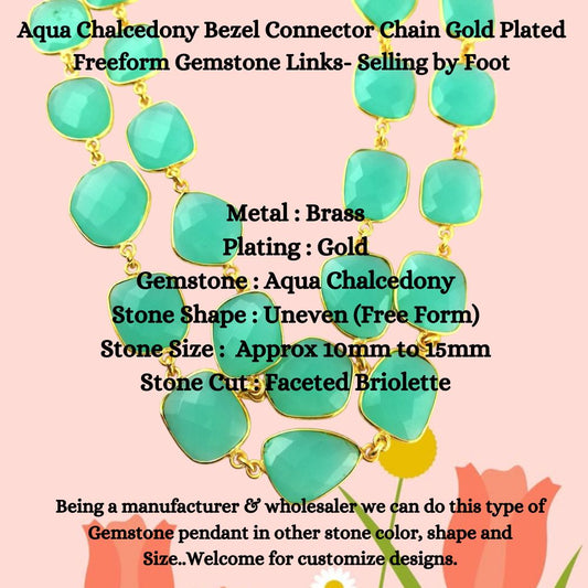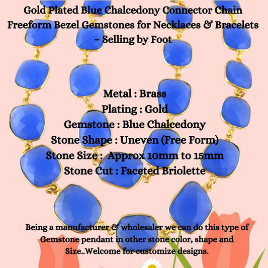 Gold Plated Blue Chalcedony Connector Chain Freeform Bezel Gemstones for Necklaces & Bracelets – Selling by Foot