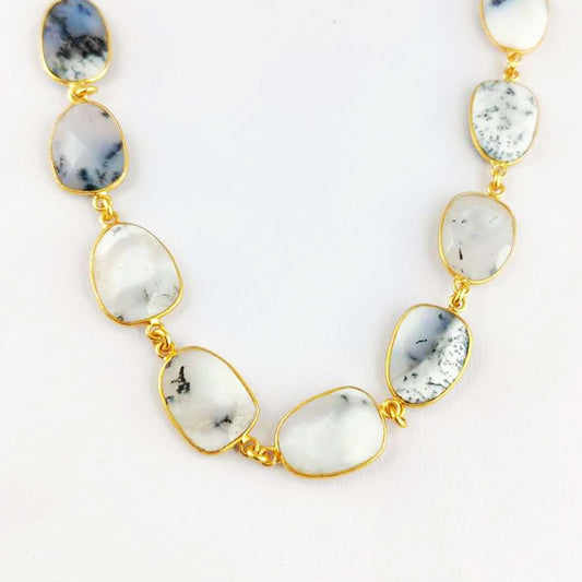 Dendrite Opal Bezel Connector Chain Gold Plated Freeform Gemstone Links Jewelry Supply- Selling by Foot