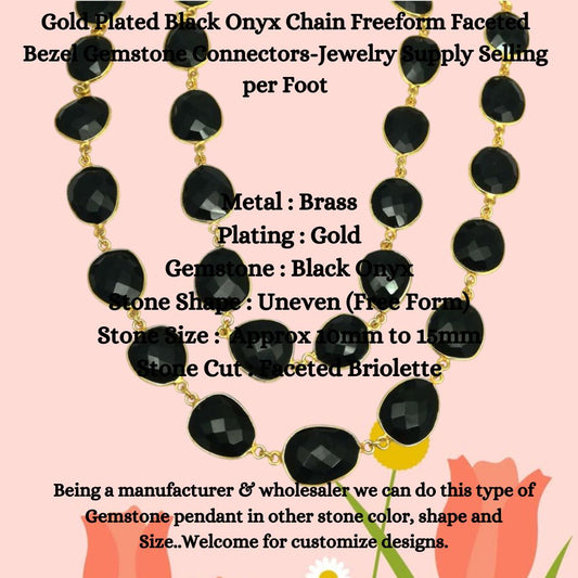 Gold Plated Black Onyx Chain Freeform Faceted Bezel Gemstone Connectors-Jewelry Supply Selling per Foot