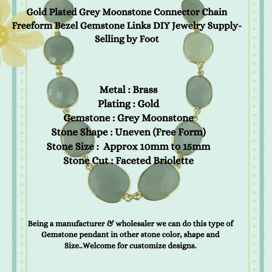 Gold Plated Grey Moonstone Connector Chain Freeform Bezel Gemstone Links DIY Jewelry Supply- Selling by Foot