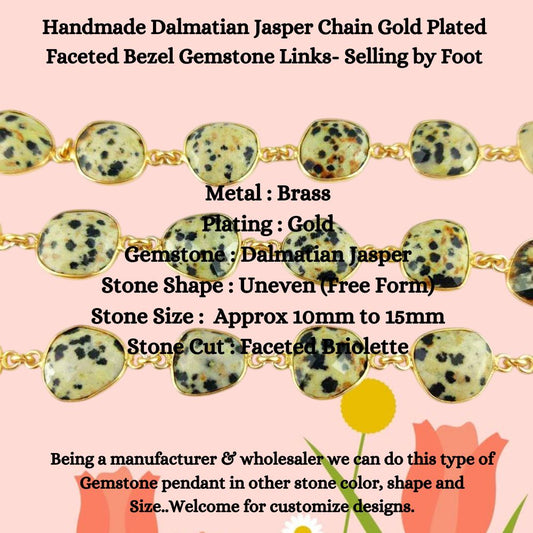 Handmade Dalmatian Jasper Chain Gold Plated Faceted Bezel Gemstone Links- Selling by Foot