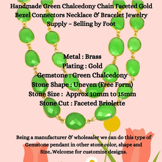Handmade Green Chalcedony Chain Faceted Gold Bezel Connectors Necklace & Bracelet Jewelry Supply – Selling by Foot