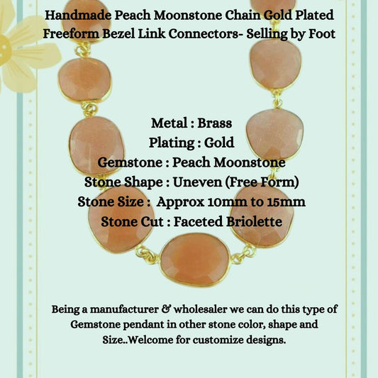 Handmade Peach Moonstone Chain Gold Plated Freeform Bezel Link Connectors- Selling by Foot