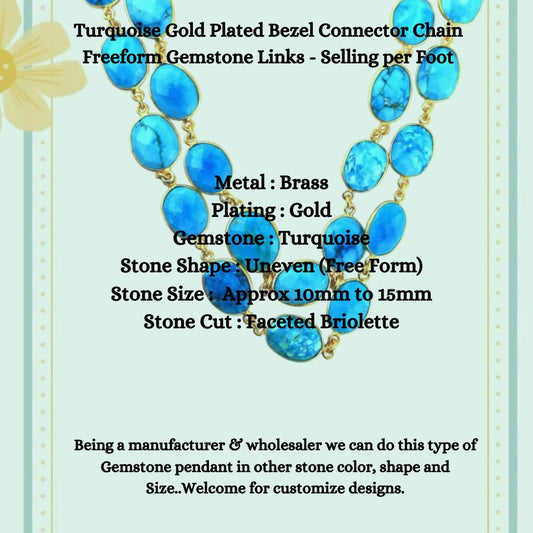 Turquoise Gold Plated Bezel Connector Chain Freeform Gemstone Links - Selling per Foot