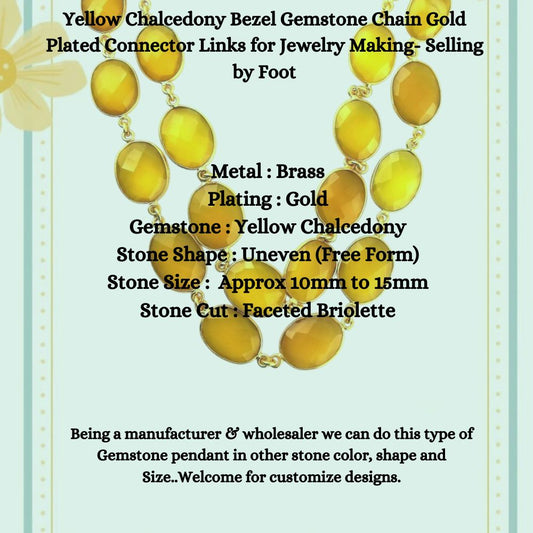 Yellow Chalcedony Bezel Gemstone Chain Gold Plated Connector Links for Jewelry Making- Selling by Foot