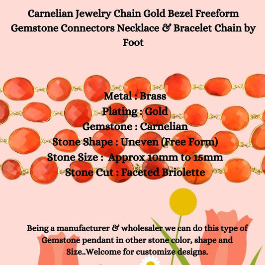 Carnelian Jewelry Chain Gold Bezel Freeform Gemstone Connectors Necklace & Bracelet Chain by Foot