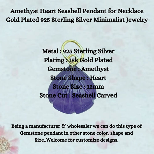 Handcrafted Amethyst Seashell Pendant February Birthstone Gold Plated Silver Jewelry