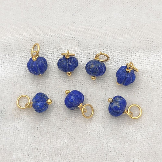 Carved Lapis Lazuli Melon Bead Blue Gemstone Pumpkin Pendant for Necklaces & Bracelets- Selling Per Piece