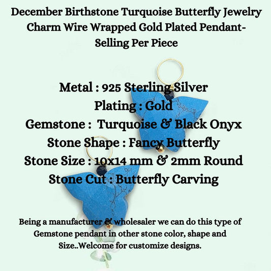 December Birthstone Turquoise Butterfly Jewelry Charm Wire Wrapped Gold Plated Pendant- Selling Per Piece