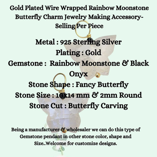 Gold Plated Wire Wrapped Rainbow Moonstone Butterfly Charm Jewelry Making Accessory- Selling Per Piece