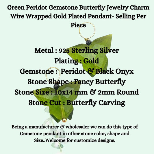 Green Peridot Gemstone Butterfly Jewelry Charm Wire Wrapped Gold Plated Pendant- Selling Per Piece