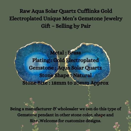 Raw Aqua Solar Quartz Cufflinks Gold Electroplated Unique Men’s Gemstone Jewelry Gift – Selling by Pair