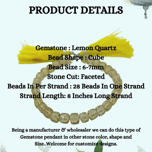 November Birthstone Citrine Faceted Cube Beads Yellow Square Gemstone Beads for Bracelet & Jewelry Making- Selling Per Strand