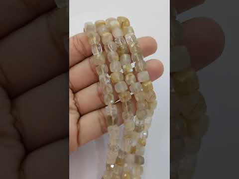 Faceted Golden Rutile Square Cube Beads Natural Gold Rutilated Quartz Gemstone Beads for Handmade Jewelry Making- Selling Per Strand