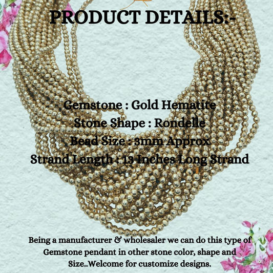 Gold Hematite Beads Strand 3mm Faceted Round Metallic Gemstone Beads, 13-Inch Strand for DIY Jewelry Making Supplies- Selling Per Strand