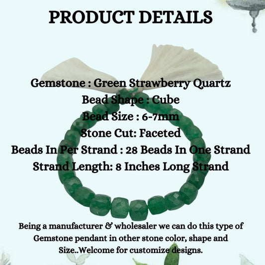 Green Strawberry Quartz Beads Natural Gemstone, Elegant Faceted Jewelry Making Beads for Bracelets, Necklaces & Craft Designs – Selling Per Strand