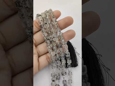 Faceted Black Dot Square Cube Beads Natural Spotted Gemstone Beads for Handmade Jewelry Making- Selling Per Strand