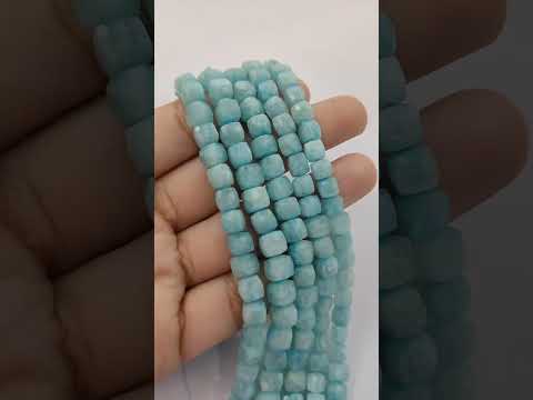 Natural Amazonite Faceted Cube Beads Blue Square Gemstone Beads for Bracelet & Jewelry Making- Selling Per Strand