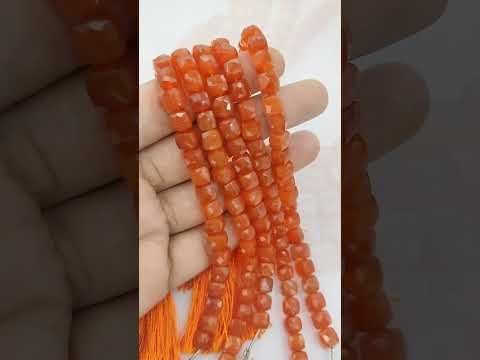 Natural Carnelian Faceted Cube Beads for Bracelet Making, Square Orange Red Gemstone Beads for DIY Jewelry- Selling Per Strand