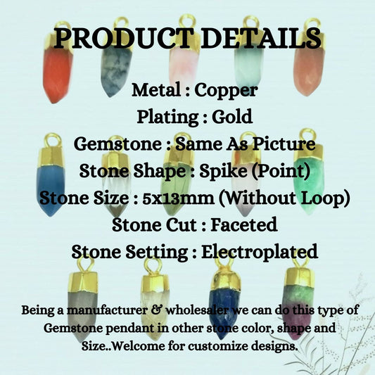Gold Electroplated Amazonite Spike Pendant Handmade Birthstone Charm for DIY Necklace Designs- Selling Per Piece